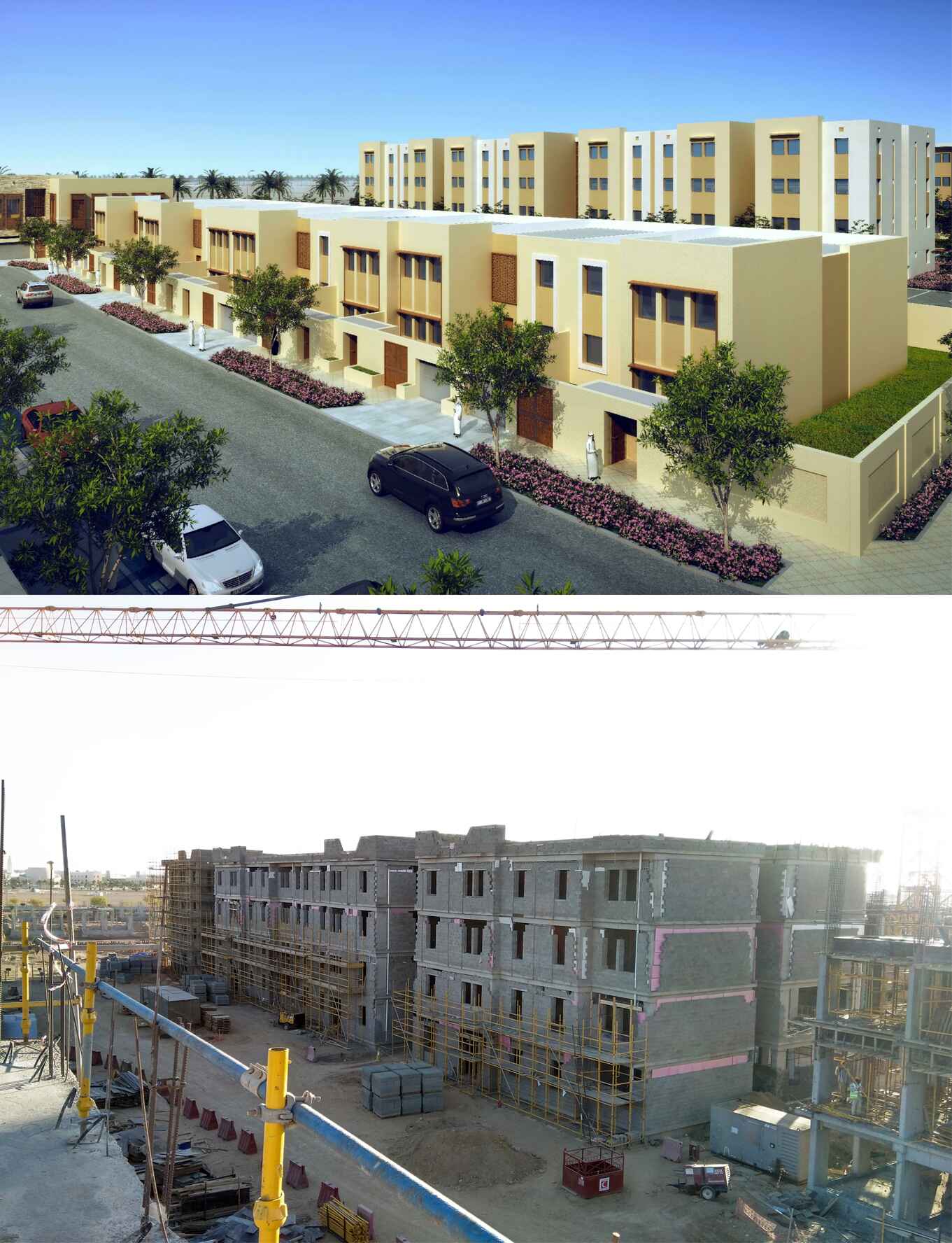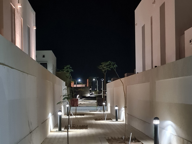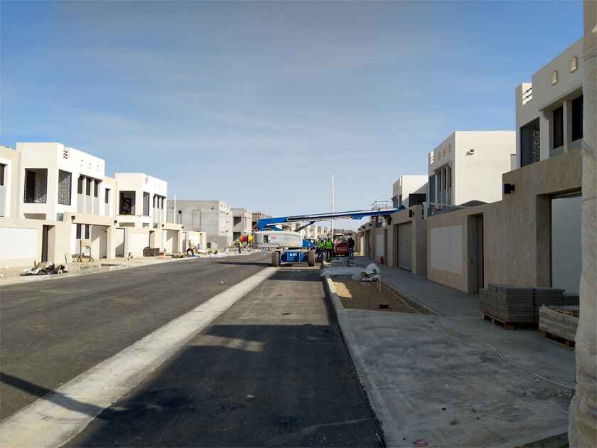 استكمال الموقع: حدائق محلية، مناطق ملاعب، منطقة جلوس، رصف الطرق، وضع العلامات، الممرات، لافتات الشوارع، إنارات الموقع، منحدرات المعاقين والمساحات المعشبة وغير المعشبة، مظلات مواقف السيارات ... إلخ.